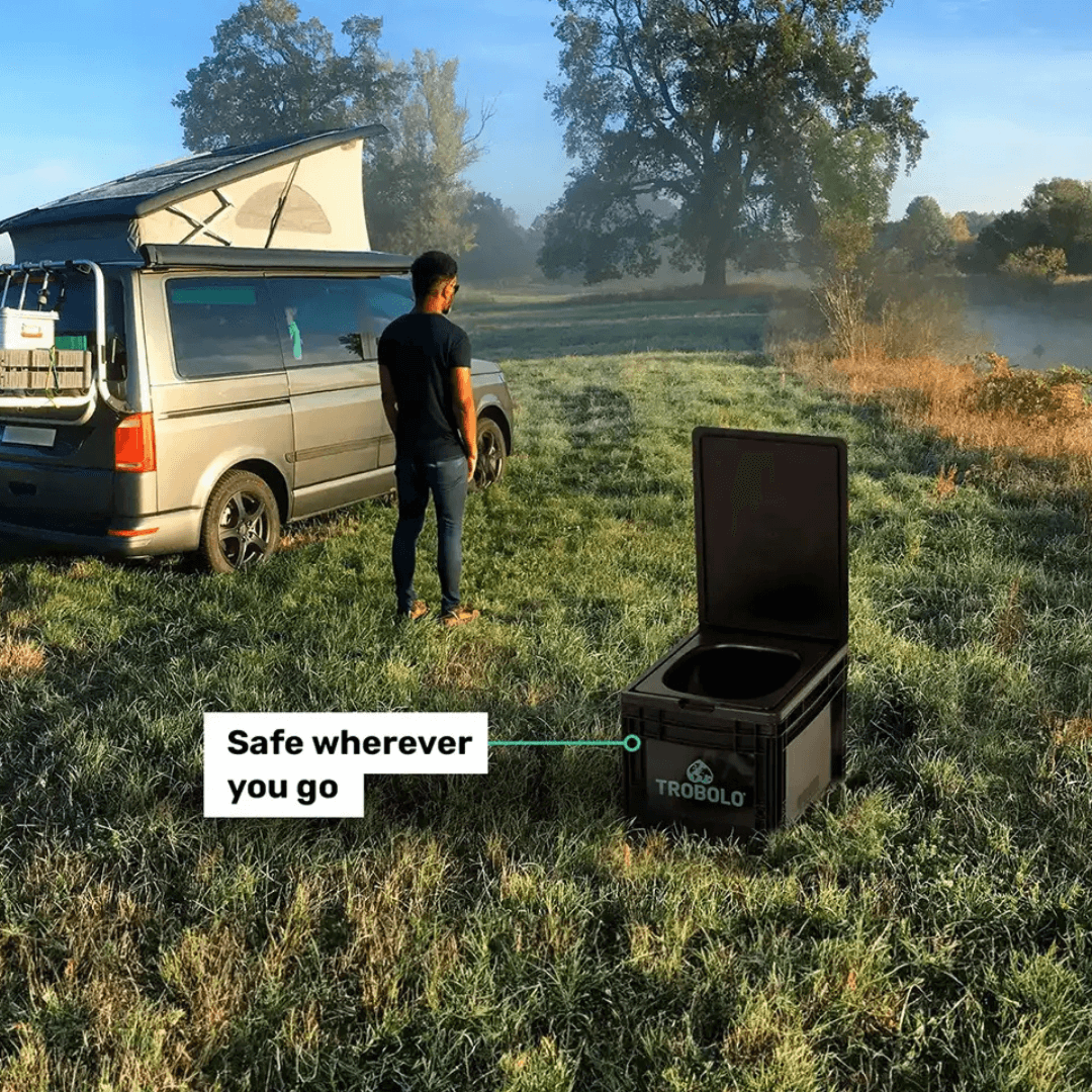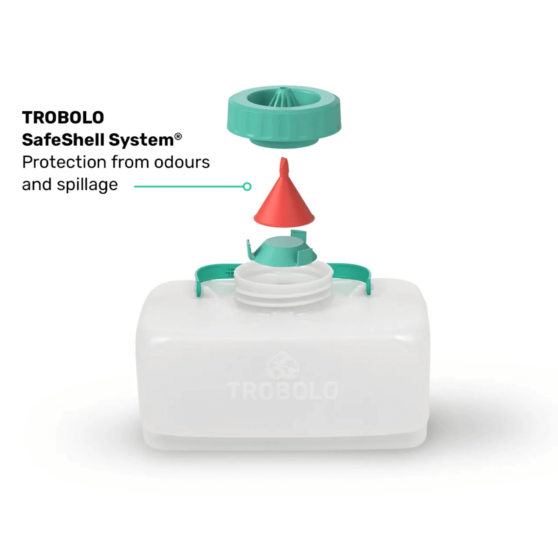 O ochranu proti úniku tekutin a zápachu se stará patentovaný systém TROBOLO SafeShell, který je integrován do víka a napojen na separátor moči. Tento systém spolehlivě zajišťuje, že se ani při transportu nic nevylije a že toaleta zůstane bez zápachu.