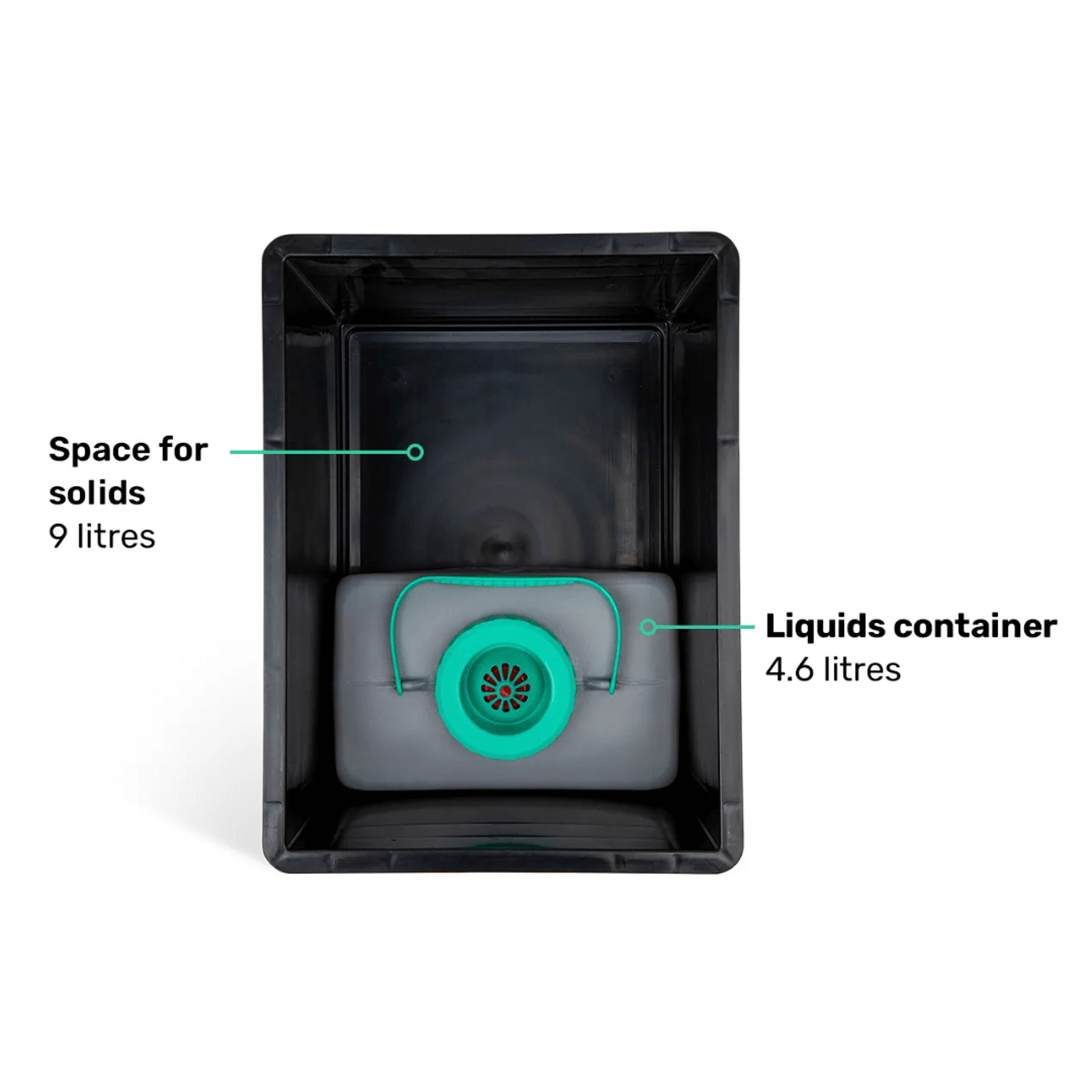 Toaleta využívá osvědčený separační systémmoči a tuhé odpady jsou oddělovány pomocí integrovaného separátoru moči, čímž se minimalizuje zápach a zajišťuje naprostá hygieničnost. Kapacita činí 4,6 litru pro moč a 9 litrů pro pevný odpad, což vystačí na přibližně 10–14 použití pro stolici a 10–20 pro močení.