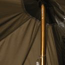Materiál stanu tvoří 68D polyester se silikonovou úpravou, který nabízí ideální kombinaci nízké hmotnosti, odolnosti a ochrany proti počasí. Silikonová vrstva zlepšuje vodoodpudivost, takže voda po povrchu snadno stéká a zároveň prodlužuje životnost materiálu. Díky tomu je stan vhodný pro různé podmínky a časté používání.