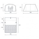 Stan je vybaven pevně všitou podlážkou, která zvyšuje ochranu před vlhkostí a zlepšuje komfort při kempování. Praktickou součástí jsou také vstupy pro elektrický kabel, které umožňují snadné připojení elektrických zařízení.
