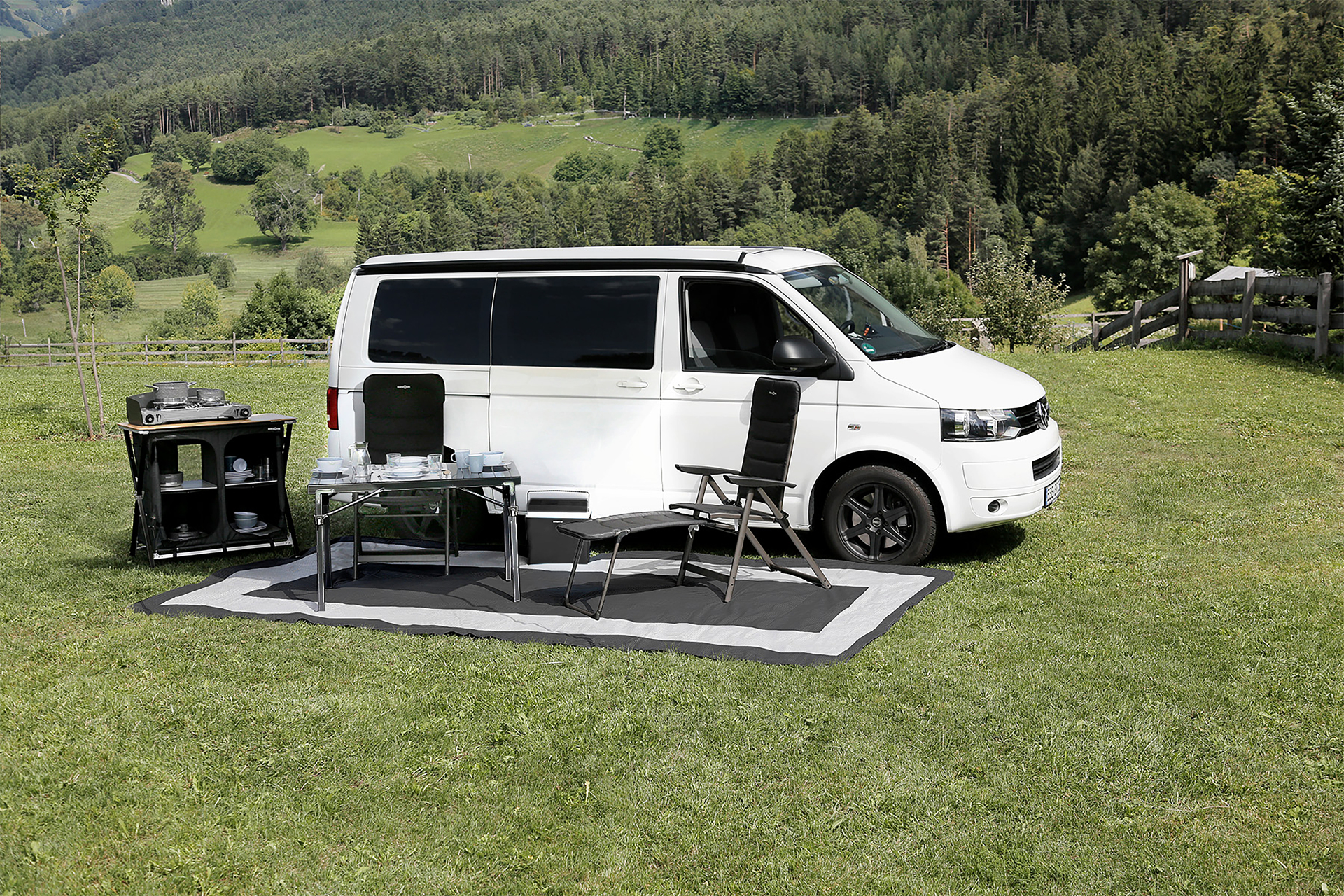 S plošnou hmotností 350 g/m² nabízí výborný kompromis mezi nízkou váhou a dlouhou životností. Koberec se nekroutí, je odolný proti roztržení a i při opakovaném skládání si zachovává svůj tvar. Součástí balení je opakovaně použitelná taška, která usnadňuje přenášení a skladování.