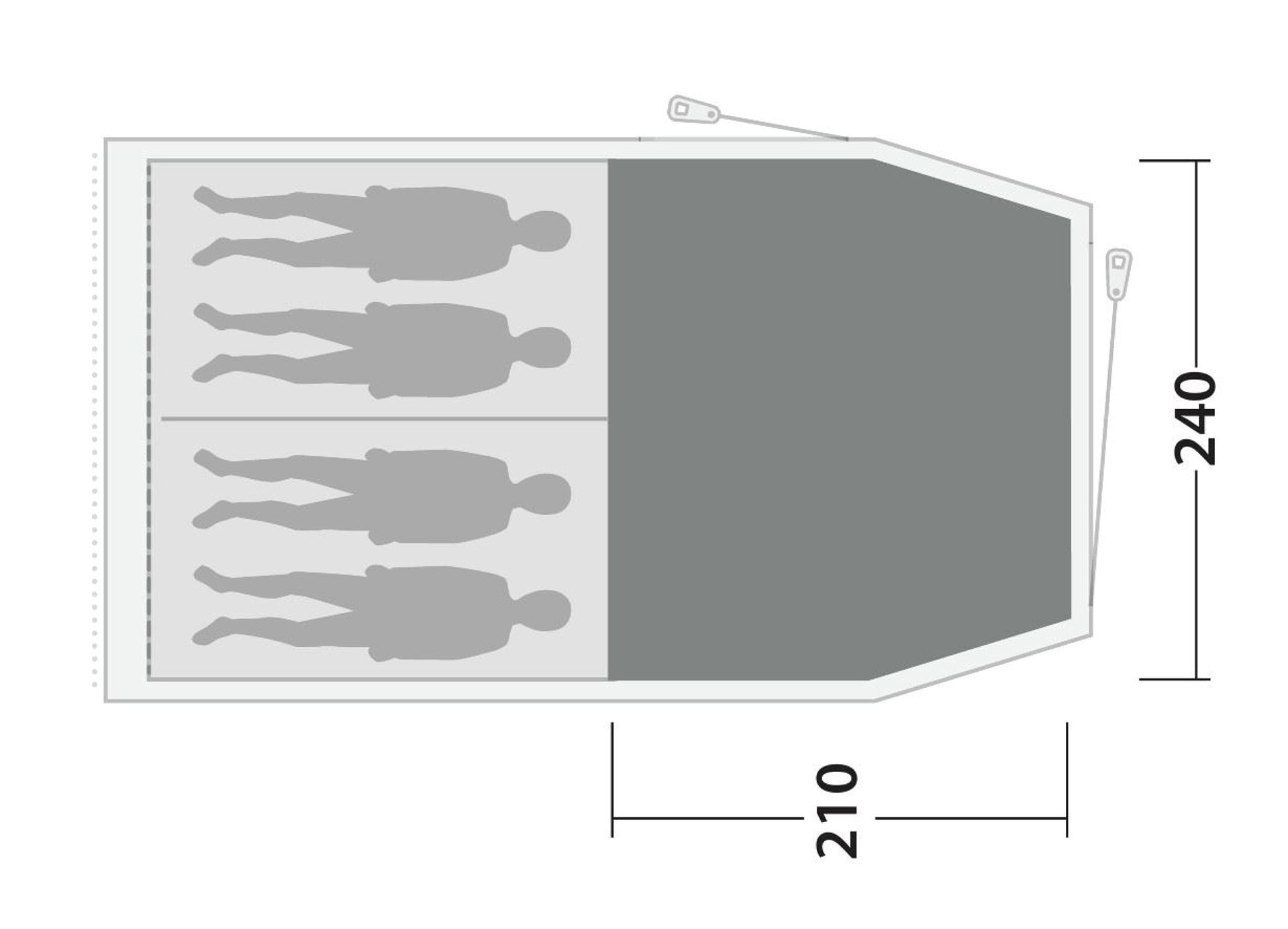 • Velikost: Optimální rozměry 210 x 240 cm pro dokonalé pokrytí podlahy stanu.