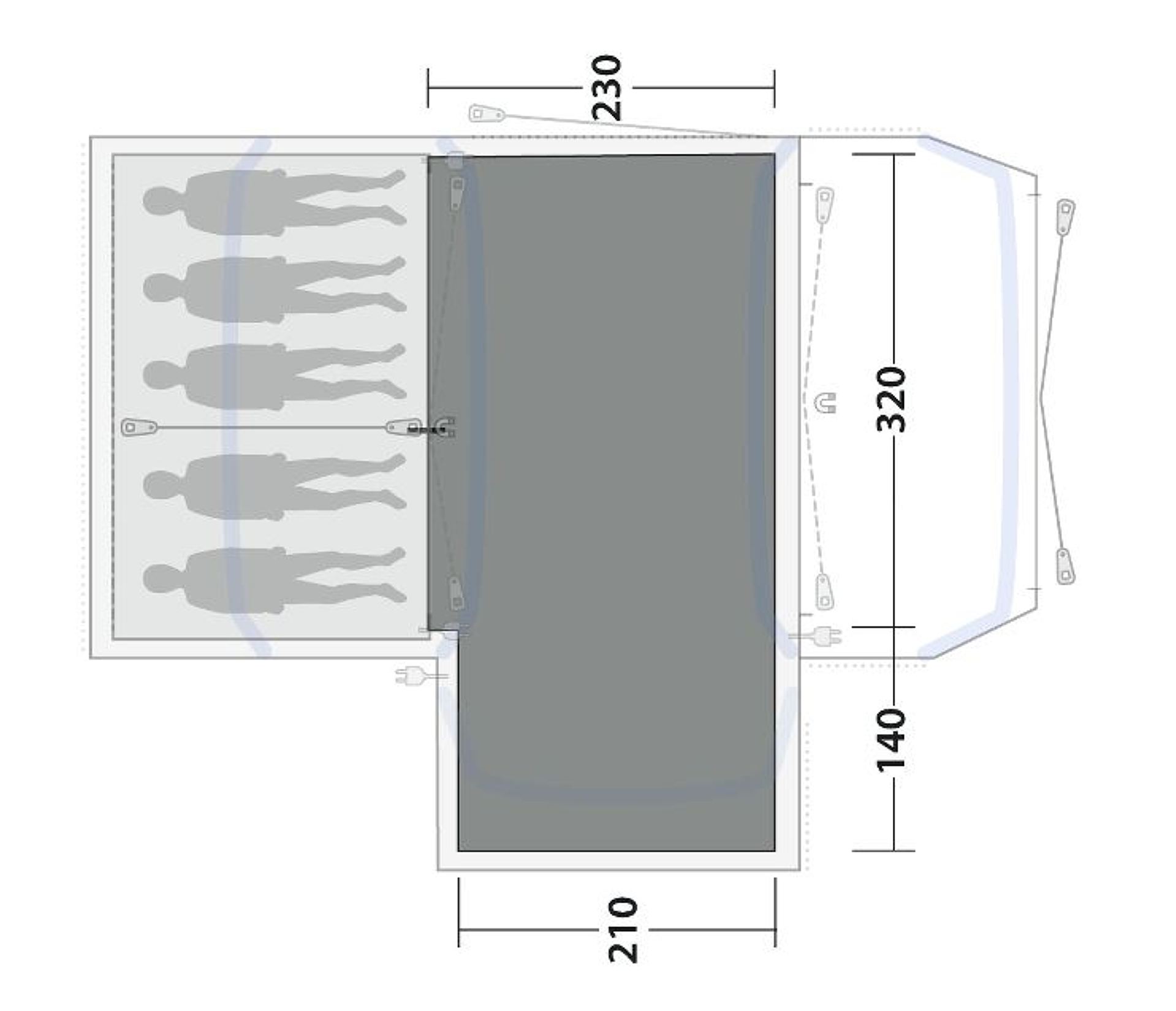 • Perfektní přizpůsobení: Speciálně navrženo pro stan Oakdale 5PA, zajišťuje přesné pokrytí a zvýšený komfort.