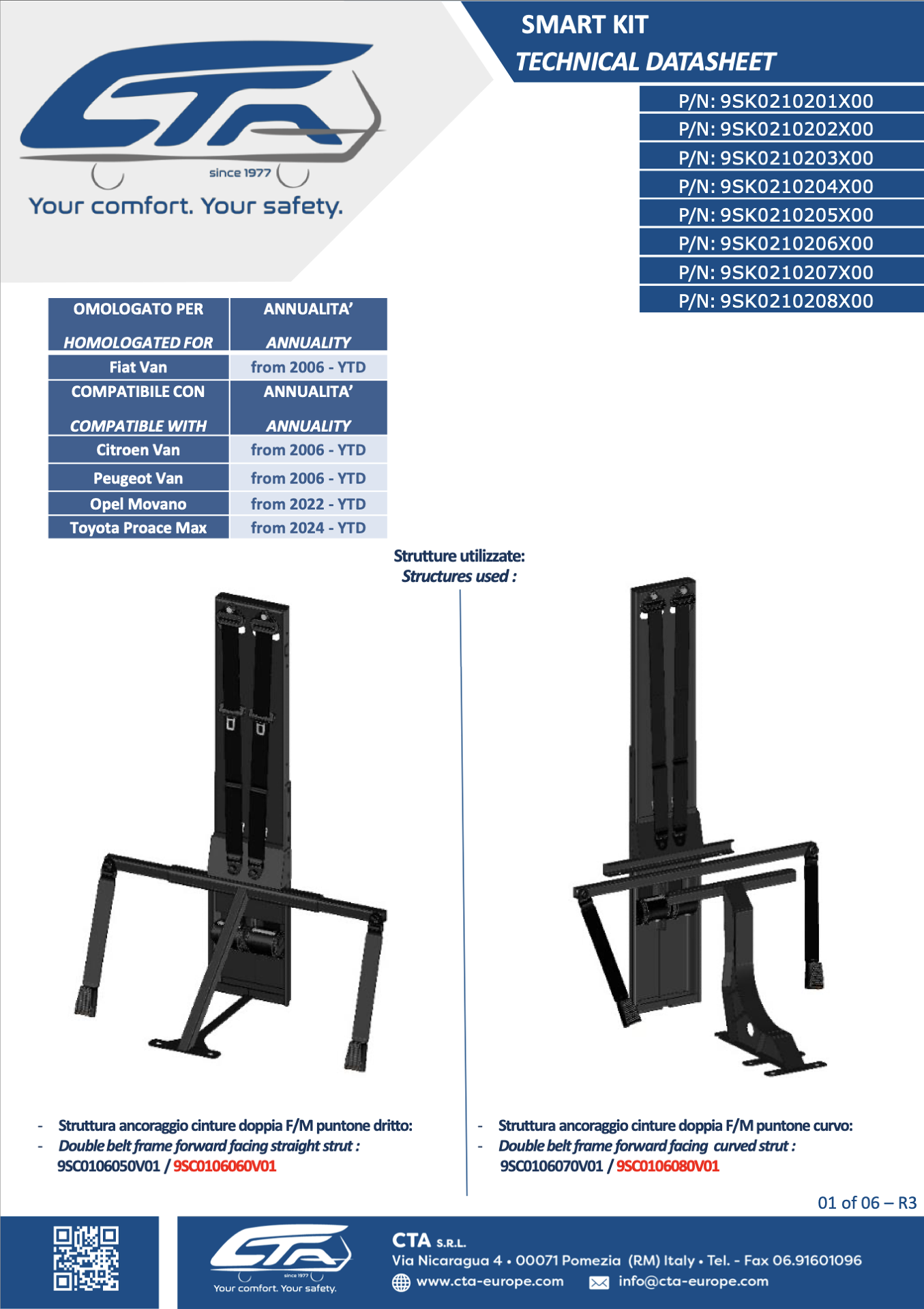 Tato kompletní sada rámu pro dvojsedačku je určena pro instalaci do obytných vozů a dodávek značek Fiat Ducato, Citroën Jumper, Peugeot Boxer (od roku 2006), Opel Movano (od 2021) a Toyota Proace Max (od 2024). Je navržena pro montáž po směru jízdy. Konstrukce je vhodná pro vozidla s pravostranným i levostranným řízením.