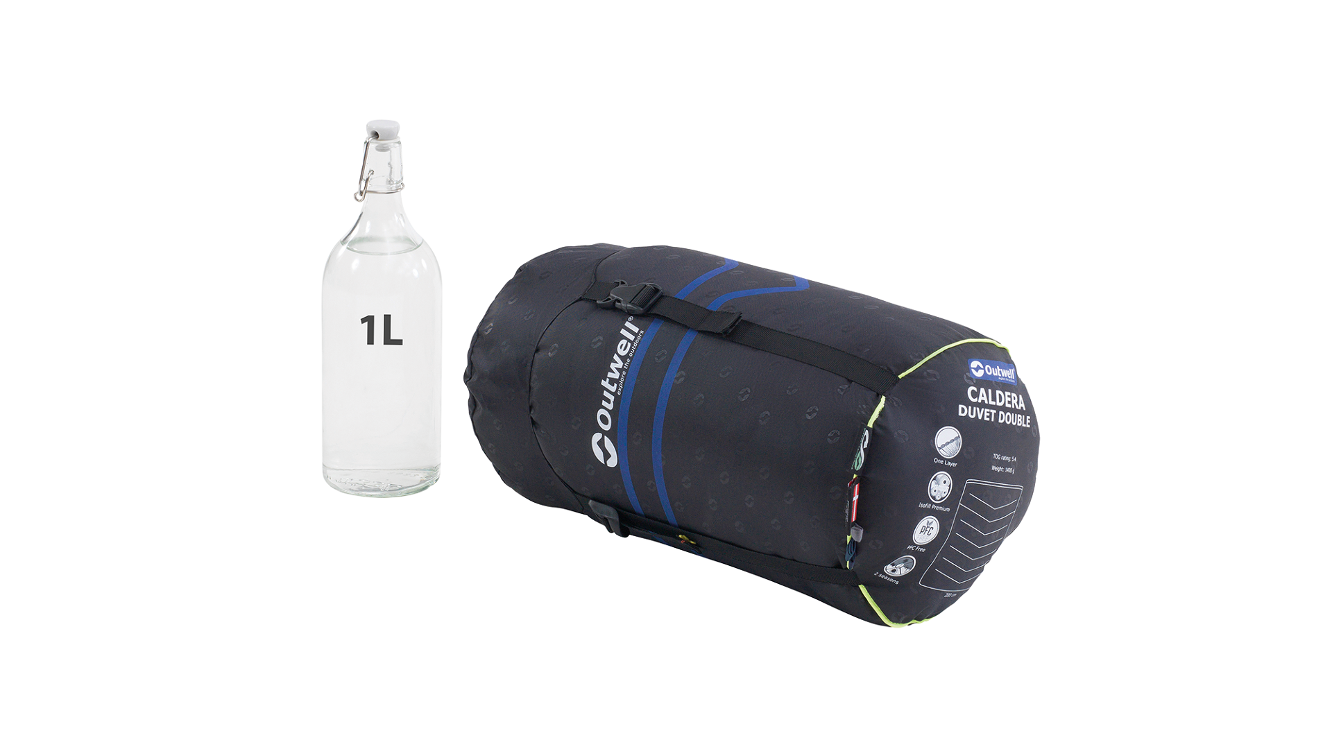 Outwell Caldera Duvet Double je ideální přikrývka pro cestování s omezeným prostorem, například v malých autech, karavanech nebo obytných vozech. Díky kompaktnímu balení v kompresním obalu je velmi skladná, a přesto nabízí vysoký komfort.