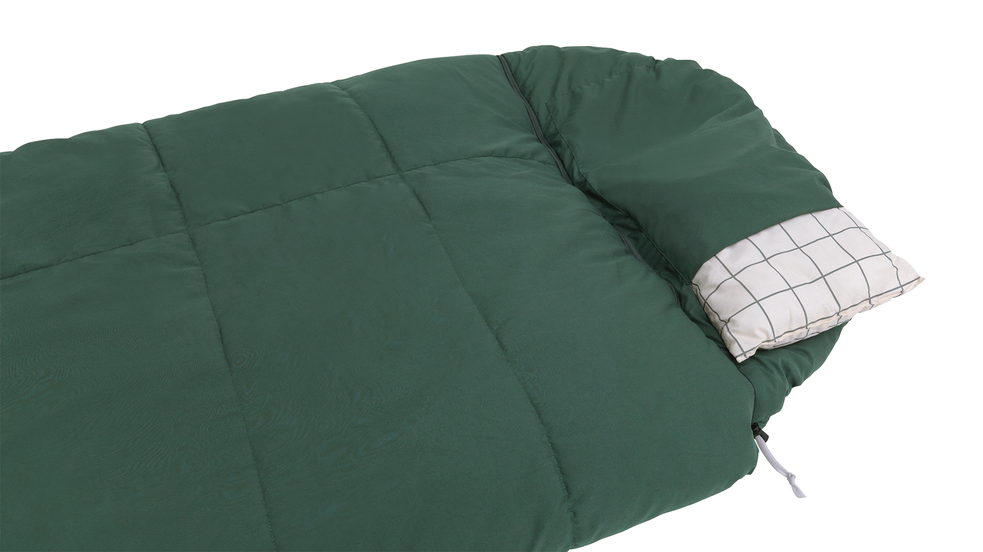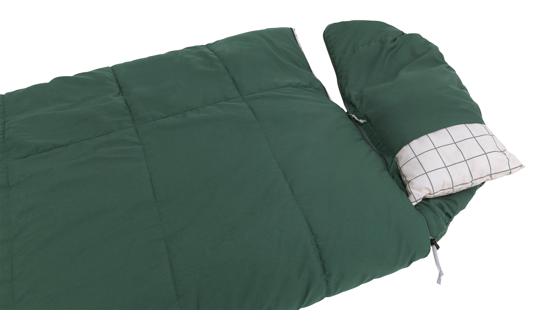 Komfortní třísezónní spací pytel s odnímatelným polštářem, kapucí na zip a bavlněnou podšívkou. Lze jej rozepnout na deku, ideální pro pohodlné rodinné kempování.