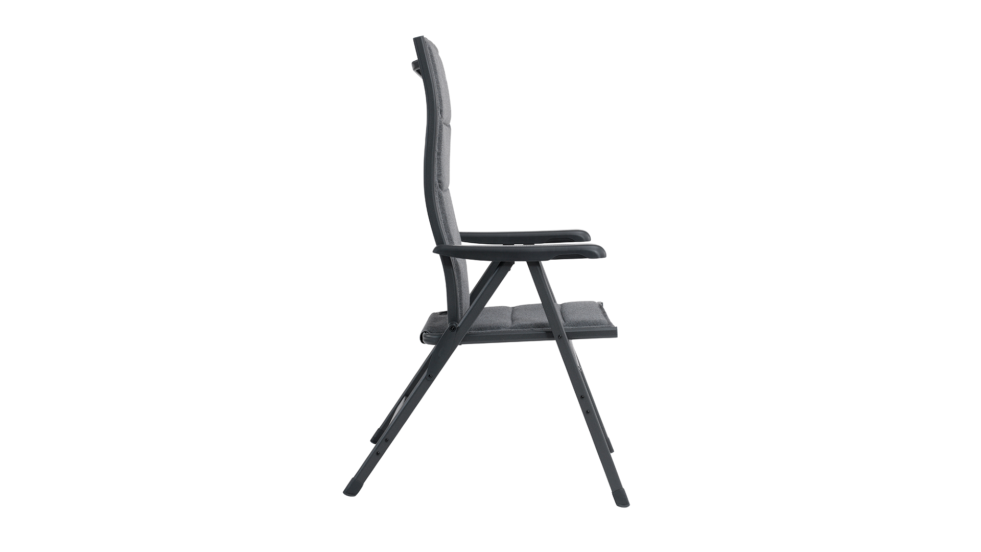 Křeslo je vyrobeno z 540D broušeného polyesteru, který je měkký na dotek, odolný vůči UV záření a nečistotám díky PFC-free úpravě. Silné polstrování v sedáku i opěrce poskytuje vynikající izolaci a komfort. Ergonomicky tvarované područky s protiskluzovou úpravou umožňují snadný úchop a pohodlné sezení.