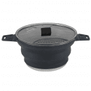 Skládací hrnec Outwell Collaps Stew Pot 2,5 l s ocelovým dnem, cedníkem ve víku a možností přímého ohřevu je ideální pro kempování.