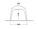 Celková hmotnost 7,2 kg a rozměry po sbalení 68 × 18 × 18 cm dělají z tohoto modelu dobře přenosný a skladný přístřešek. Součástí balení jsou kolíky a opravná sada.