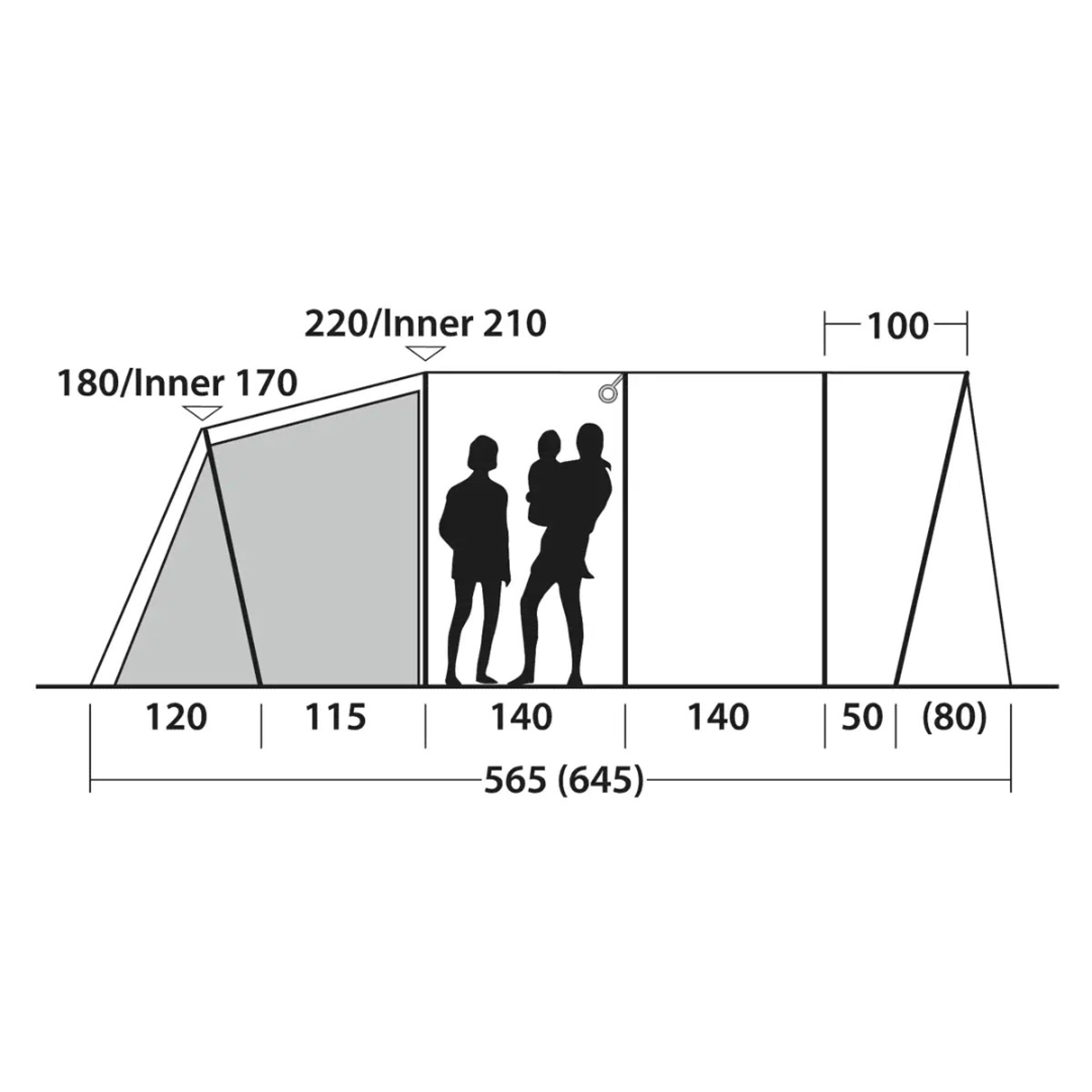 Výška stanu 220/210 cm (v nejvyšším bodě)