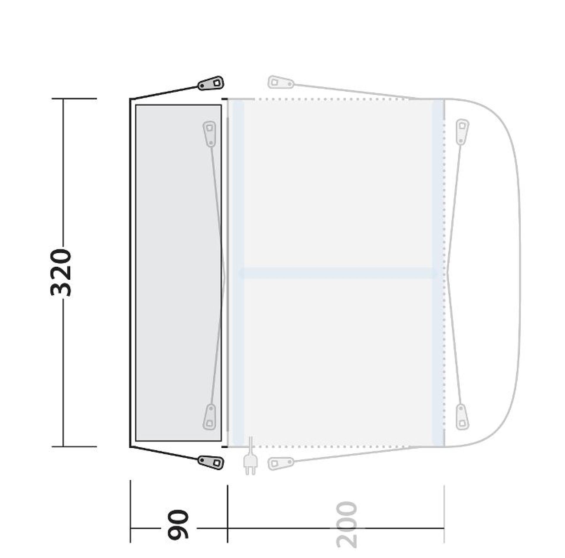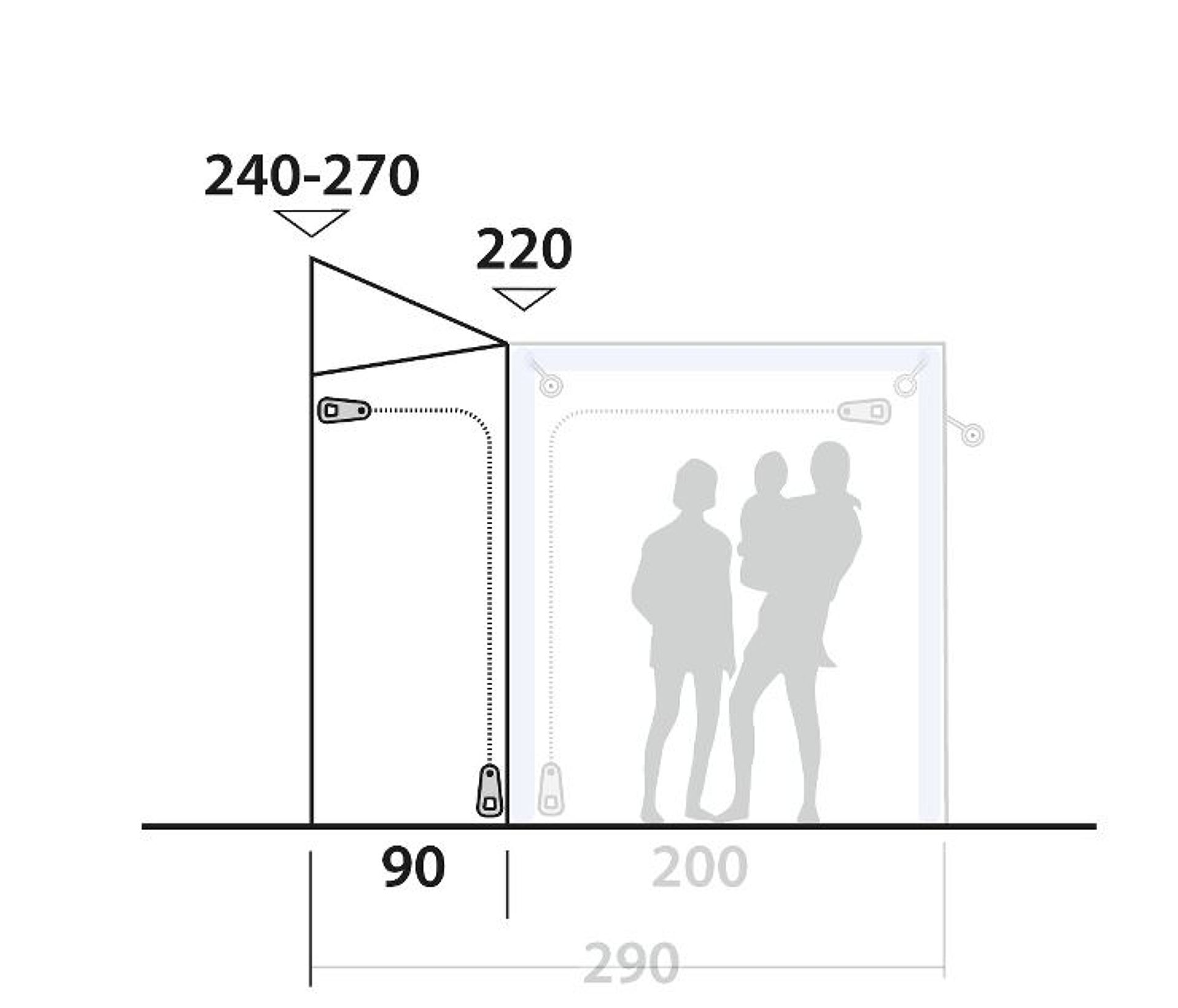 Toto připojení k dodávce pro předstan Outwell Oarkville 200SA je ideální pro vyšší vozy jako Ducato, Sprinter nebo podobné, a umožňuje snadný přístup bez nutnosti dalších spojovacích bodů.