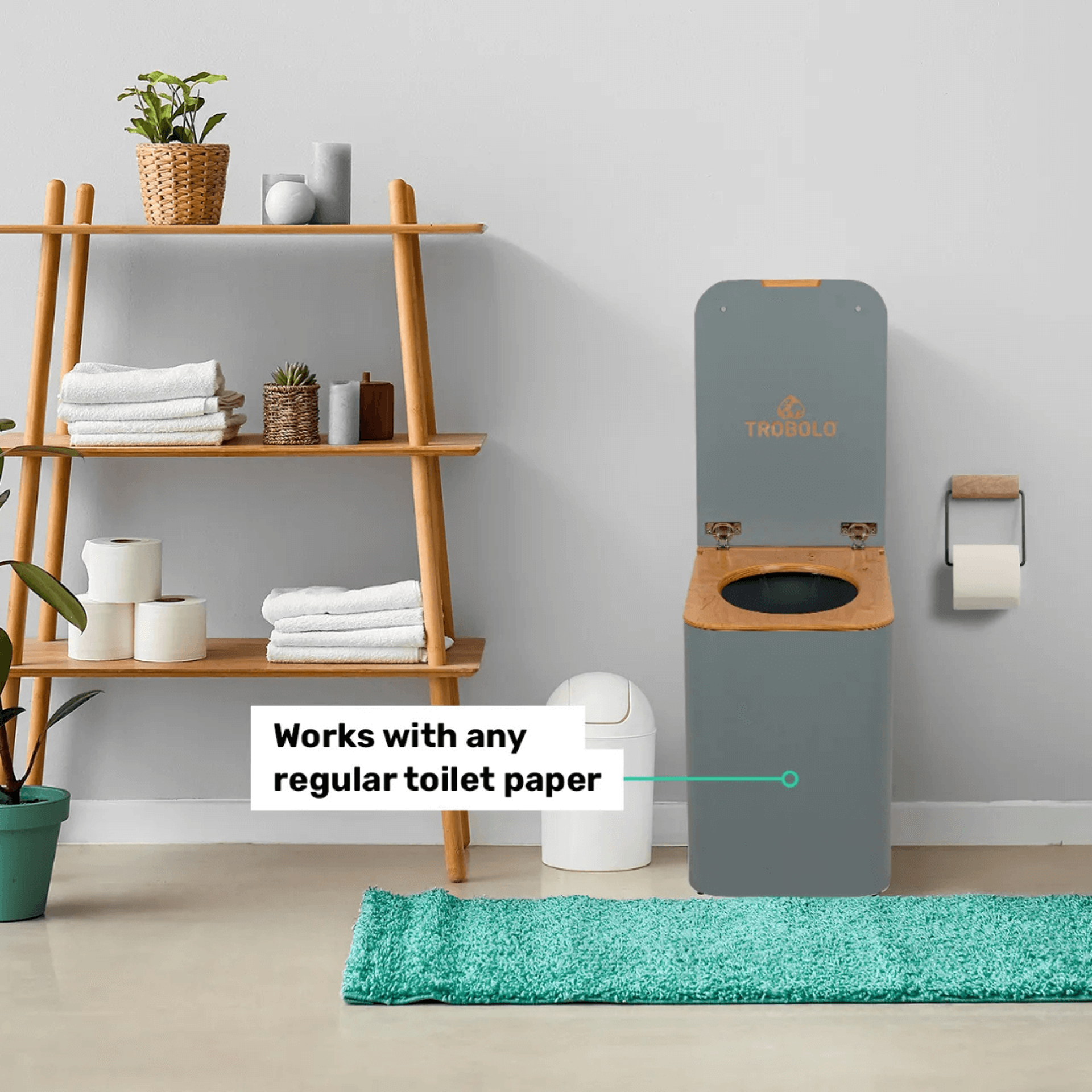 Toaleta funguje zcela bez vody, elektřiny a chemie, přičemž využívá spolehlivý separační systém moči a tuhých látek. Díky tomu je její provoz zcela bez zápachu. Tento efekt posiluje přírodní posyp a hlavně patentovaný systém TROBOLO SafeShell, který zabraňuje rozlití a úniku zápachu z nádrže na moč – i během přepravy.