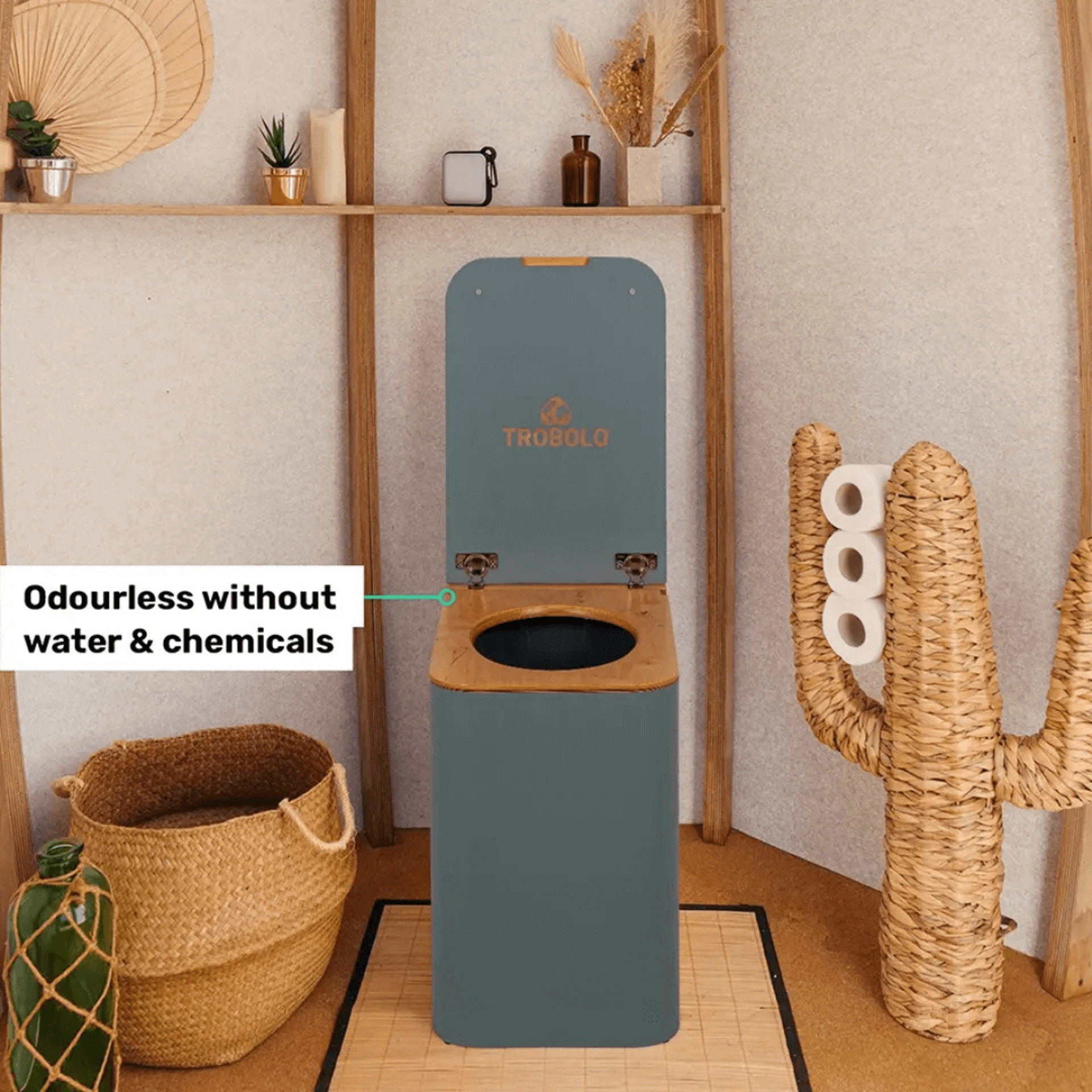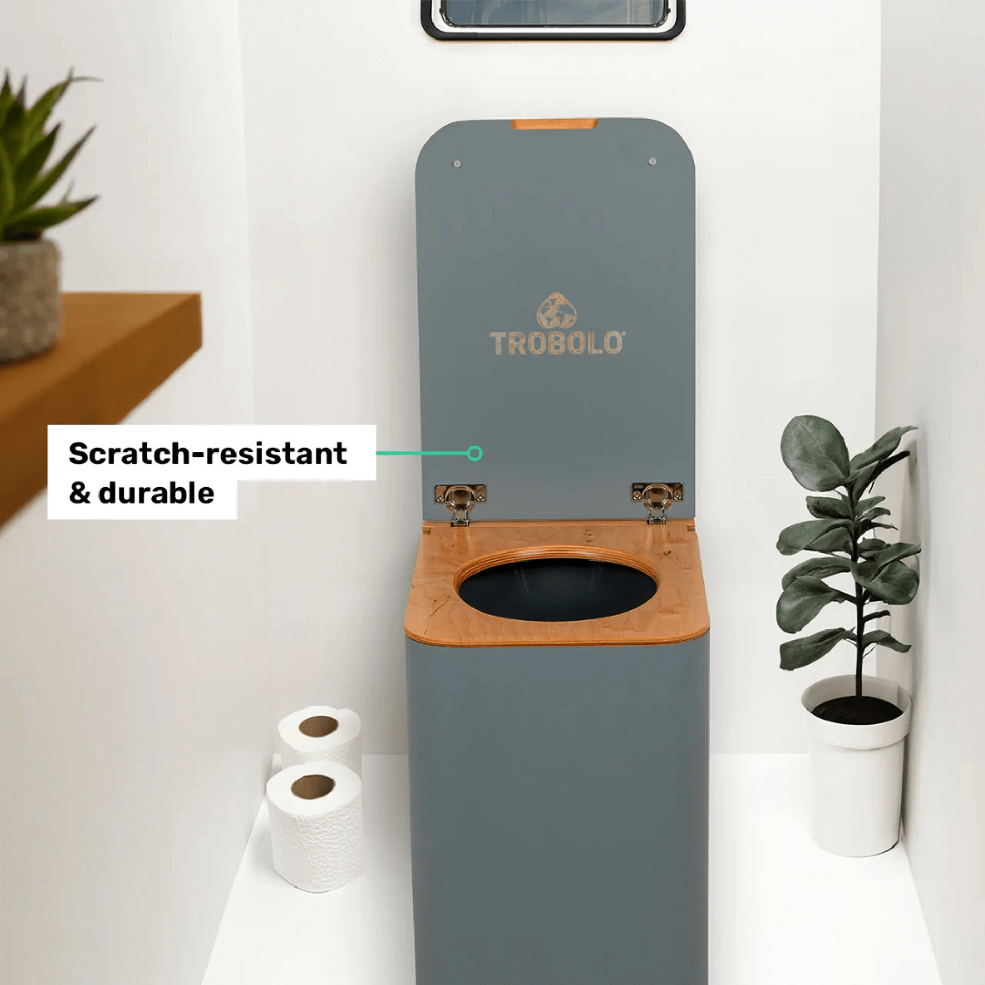 TROBOLO SilvaBlœm je prémiová separační toaleta z evropského dřeva, která v sobě spojuje přírodní estetiku, vysoký komfort a ekologický provoz bez vody a chemikálií. Tato plně soběstačná kompostovací toaleta je dostupná v moderním šedém provedení s odolným HPL povrchem, který zaručuje ochranu proti vlhkosti, poškrábání i otiskům prstů. Je ideální do zahrad, rekreačních domků, tiny houses, karavanů i obytných vozů.