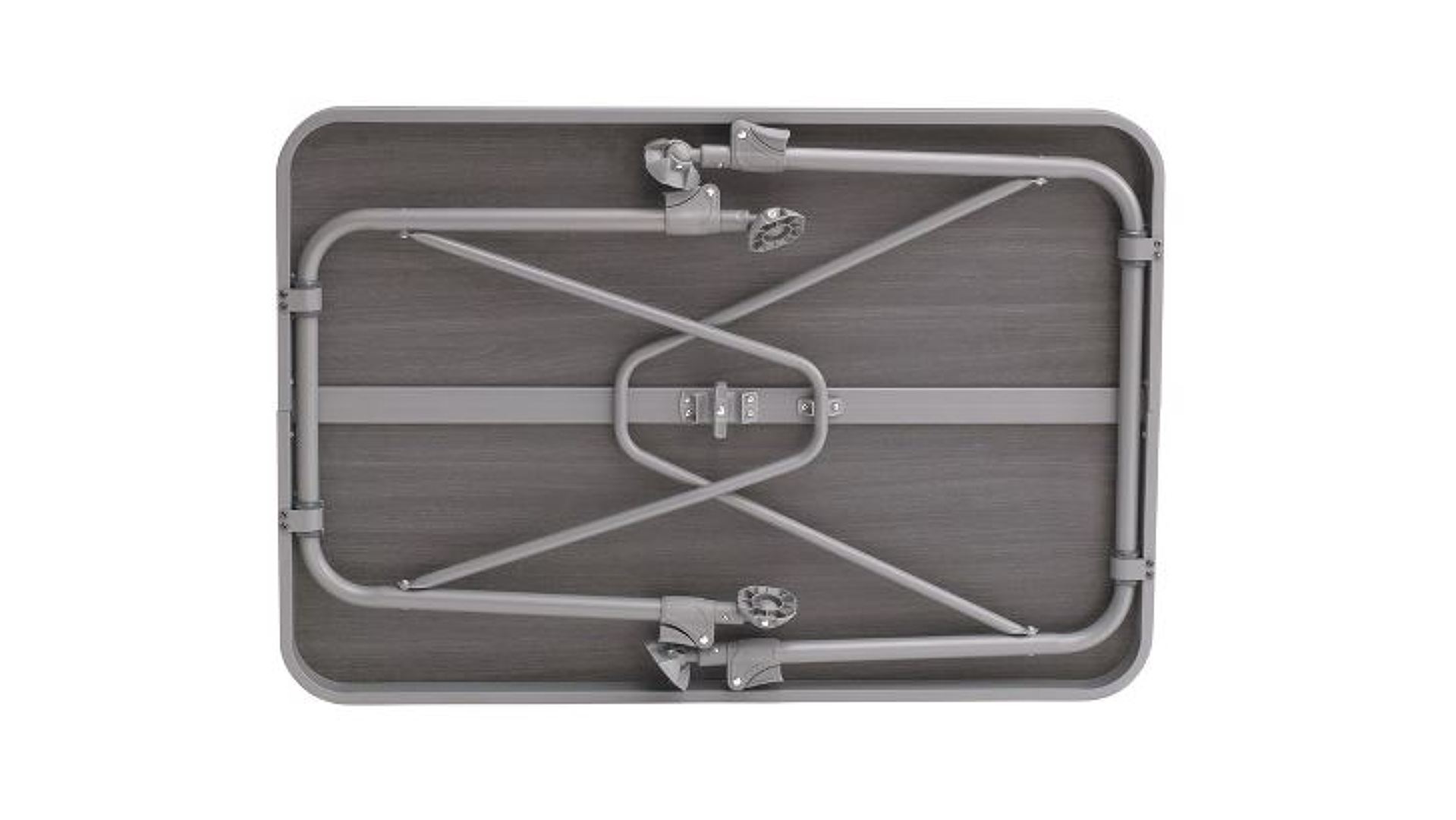 Stolek Outwell Coledale M s rozměry 68 x 100 cm, výšku lze variabilně nastavit do max. 72 cm. Hmotnost 6,2 kg.
