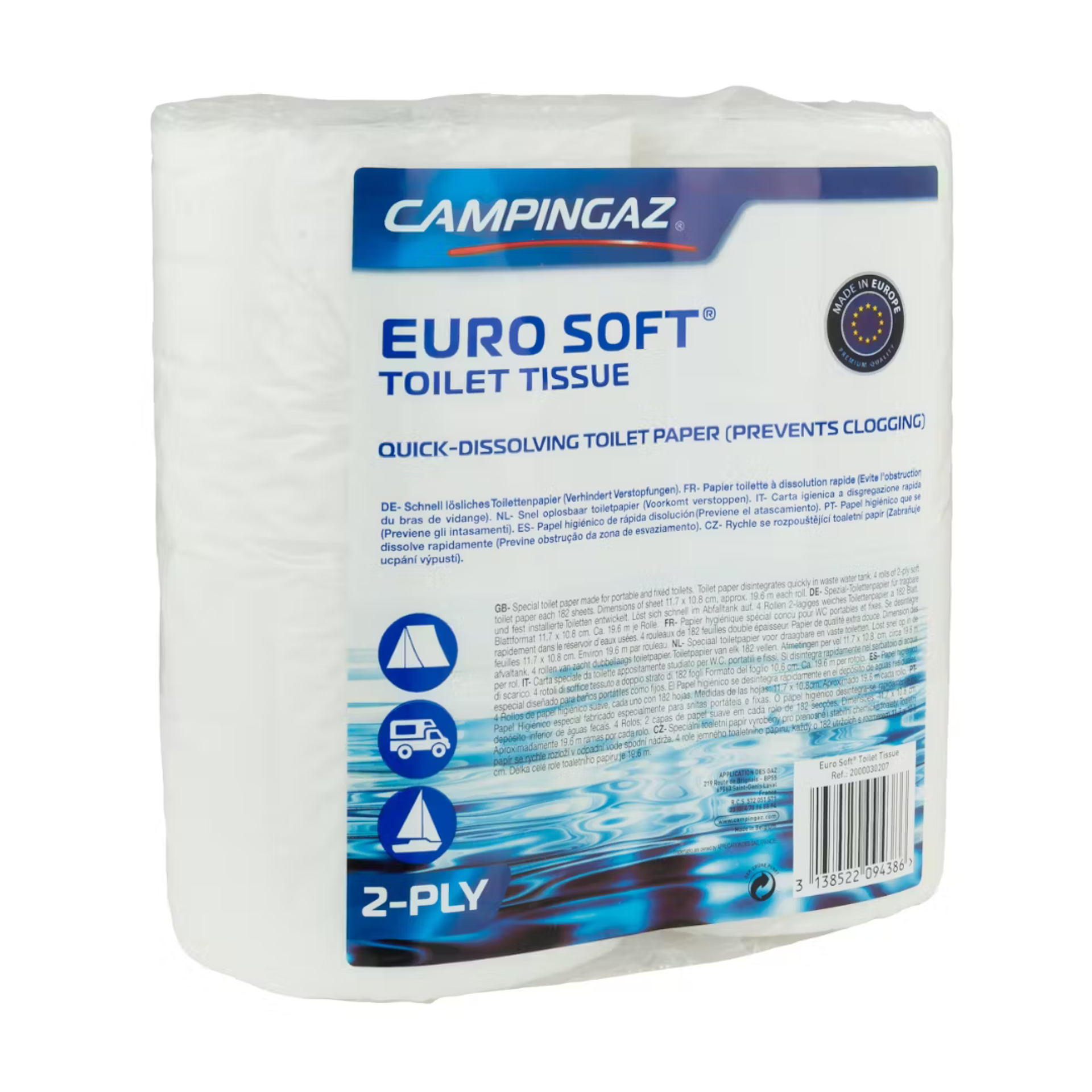 Campingaz Euro Soft 4 Pack je speciálně vyvinutý dvouvrstvý toaletní papír určený pro použití v chemických toaletách v karavanech, obytných vozech, přívěsech nebo lodích.