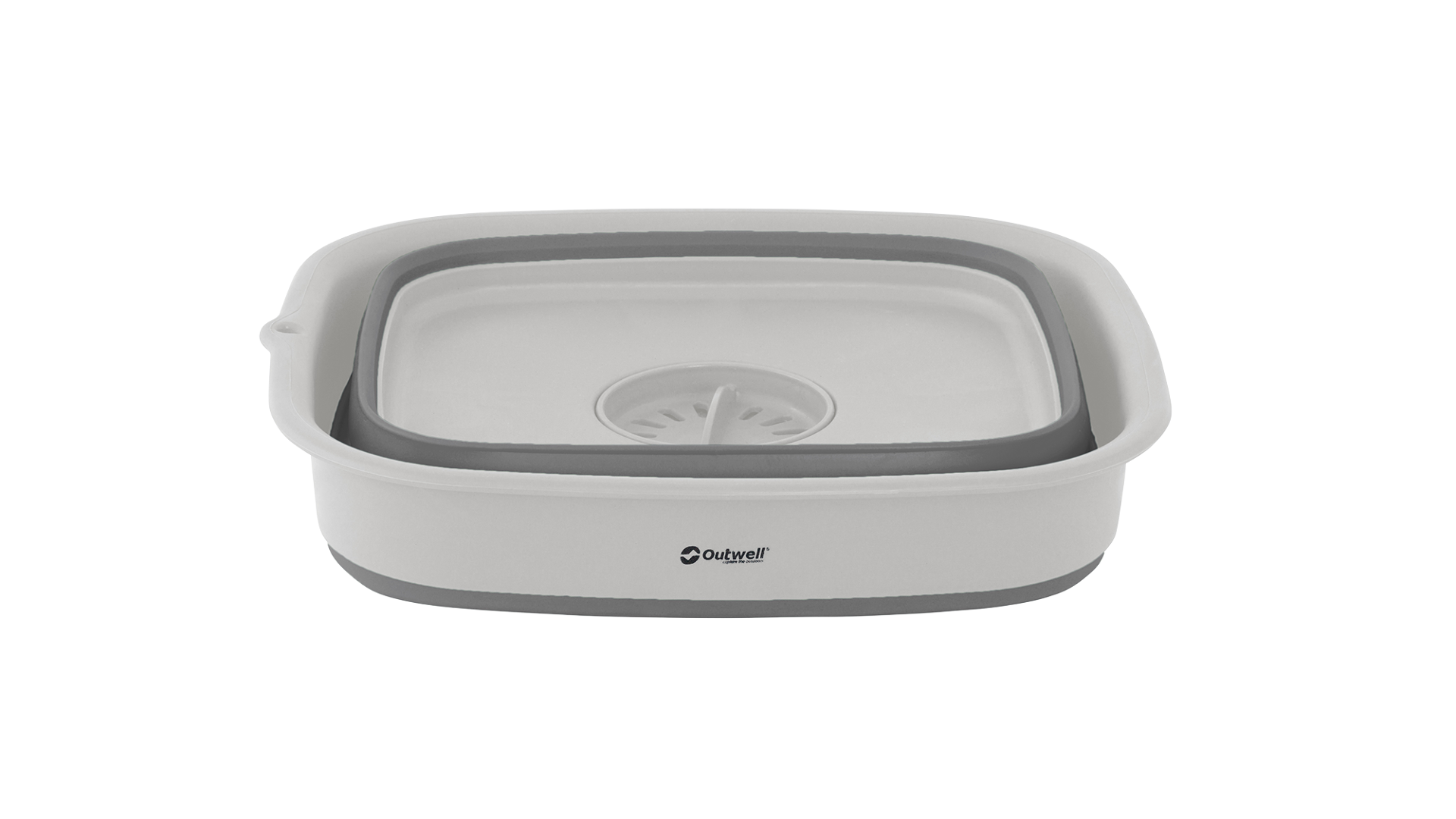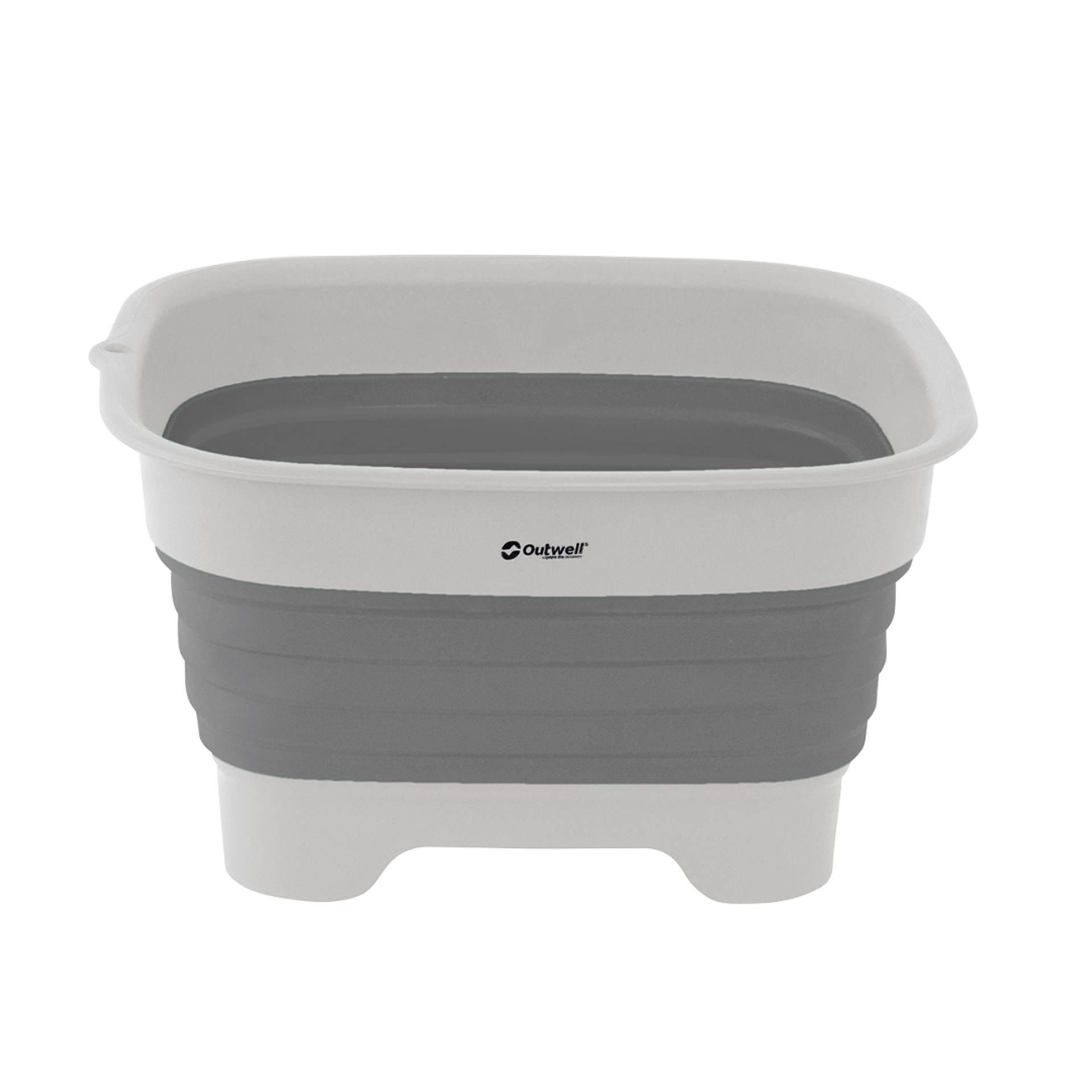 Outwell Collaps W Grey Mist je praktické skládací umývadlo s výpustí, které se po použití zcela složí naplocho, čímž výrazně šetří místo při přepravě nebo skladování. Je ideální pro mytí nádobí po jídle v kempu, na chatě nebo i při pikniku, kde není k dispozici klasický dřez.
