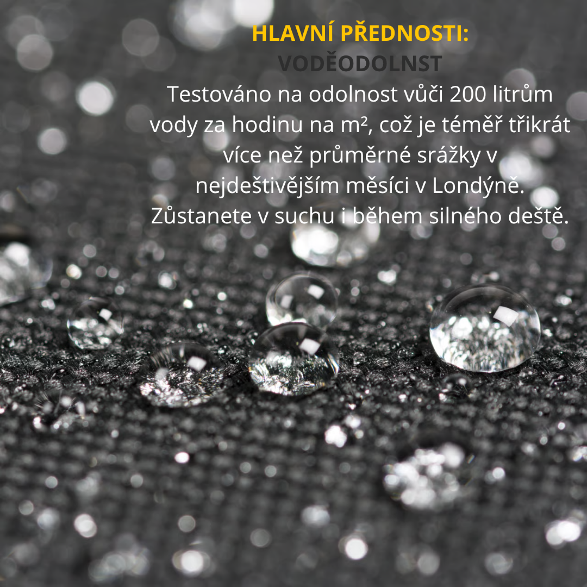 Je vyroben z extrémně odolné tkaniny Weathershield™ PVC (400 g/m²), která je zcela nepromokavá, odolná vůči mrazu, větru i špíně – a navíc se snadno čistí. Materiál zvládne srážky až 200 litrů vody za hodinu na metr čtvereční, což je víc, než zažije většina z nás i při velmi špatném počasí.